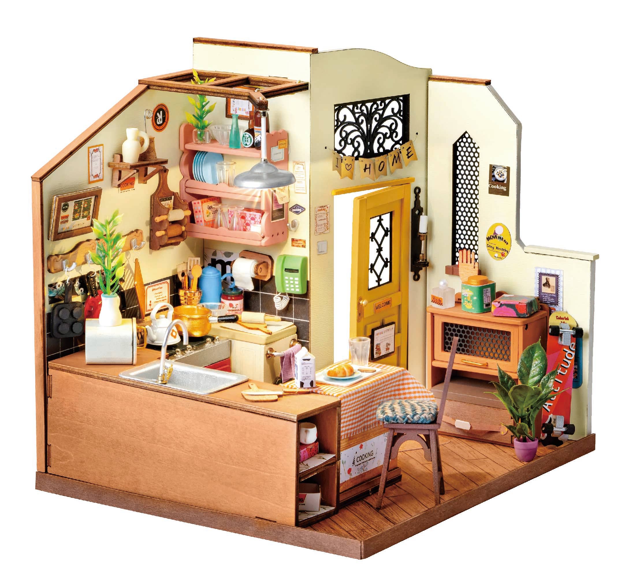 DIY Miniature House Kit: Homey Kitchen with LED Lights by Hands Craft.