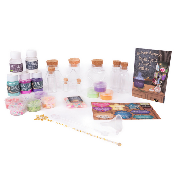 Brew up some magic with this all-in-one potion-making kit! The Enchanted Elixir Potion Shop Set comes with a spell book full of fun spells, sparkling mica glitter, baking soda, a wand, potion bottles, labels, and everything your little alchemist needs to mix, fizz, and enchant. Perfect for magical play and mystical mess-making!