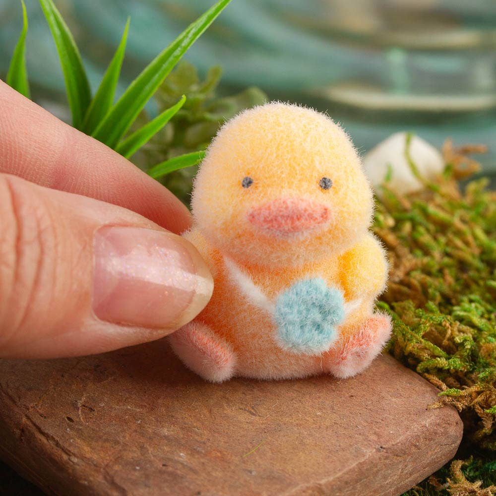 These tiny Flocked Chicks capture the look of a farm favorite. Perfect for fairy garden displays, baby shower favors, or collectible keepsakes. Their fuzzy texture bring sweetness to any miniature scene.  Nestle them in spring arrangements, place them in a dollhouse meadow, or use them to create adorable keepsakes.