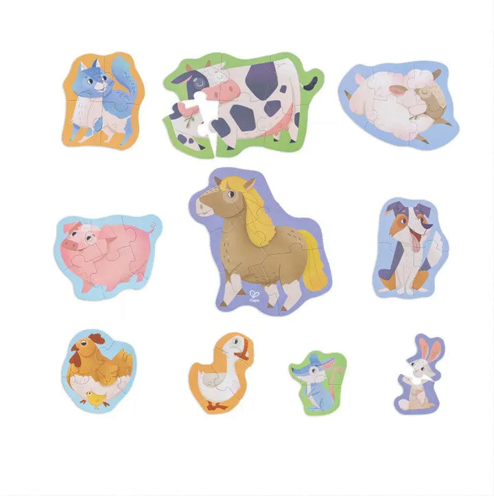 Experience the fun of our delightful puzzle collection featuring farm animals. Engage in hours of educational and entertaining playtime with these charming characters. As your little puzzle solver completes the jigsaws, encourage them to identify and make the corresponding animal noises. This will help improve their vocabulary and recognition skills of the different animals.