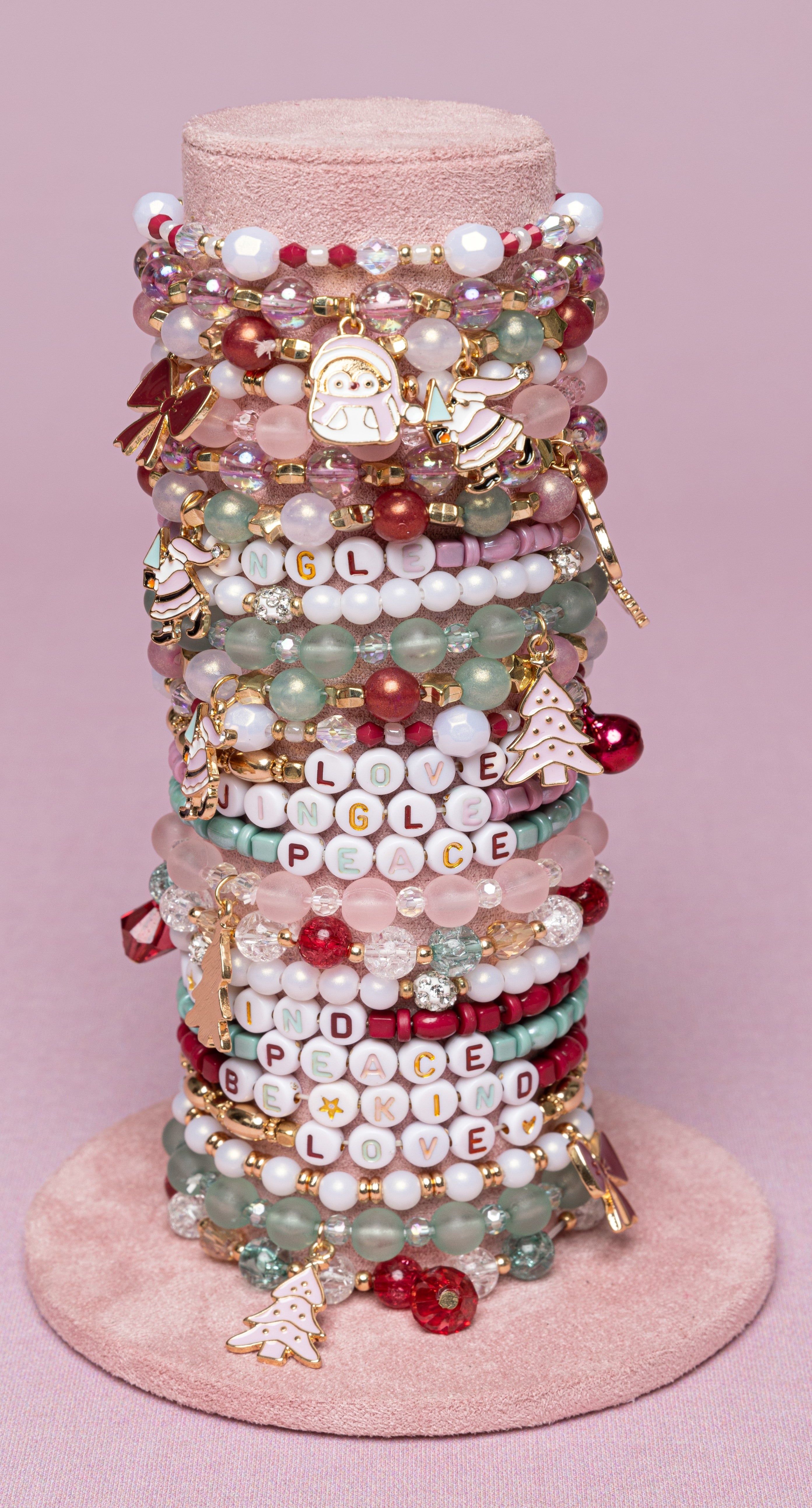 These limited edition Holiday Bracelets offer a stylish assortment of beaded and sparkly pieces that create a beautiful stack of unique holiday bracelets. Perfect for kids, they make a perfect addition to advents or to complete any holiday outfit. Each bracelet is sold separately for an incomparable one-of-a-kind look.