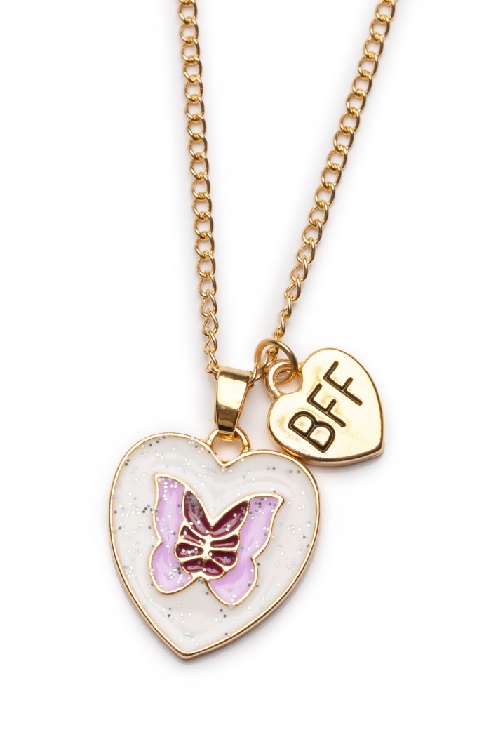 Share the love with your bestie with our Rainbow Butterfly necklace! This set includes one gold toned chain necklace, with a heart pendant! Buy two and give one to your bestie!