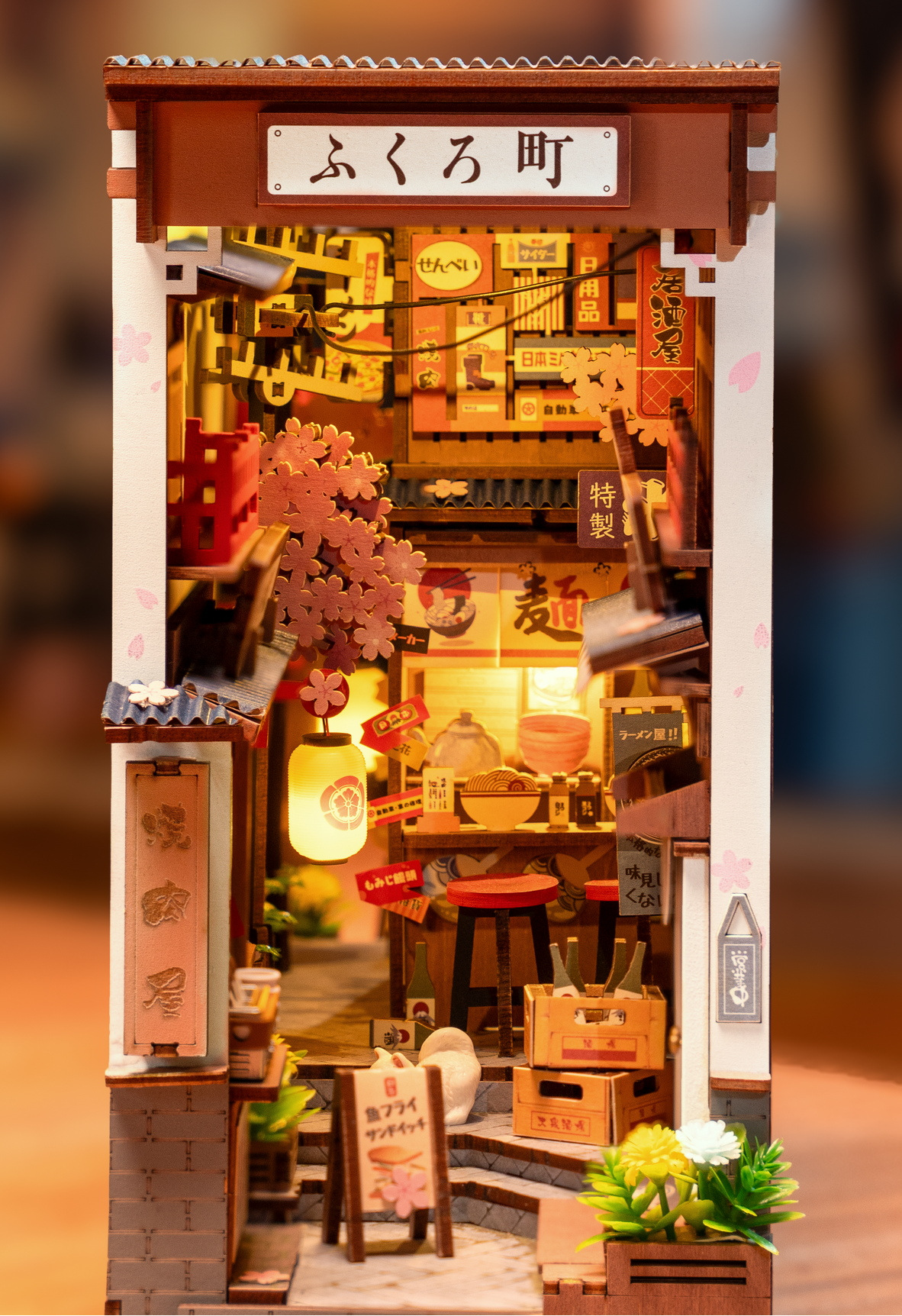 BookNooks are incredibly detailed miniature scenes that you build yourself, then fit perfectly into your bookshelf. These kits are for ages 14+ and may take up to 7hrs. to complete. Perfect for a teen or grownup! (please don't buy this for an 8 yr old...) They each include lights that illuminate the scene and include pieces made from wood, paper & metal. Requires glue & AAA batteries x 2