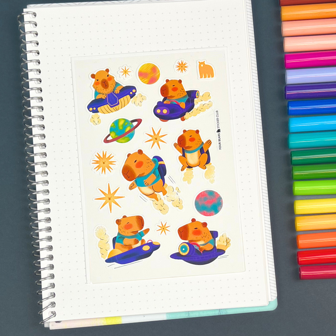 Single sheet 102x152 mm (4x6 in) White PVC stickers on a clear backing Four Bears exclusive artwork