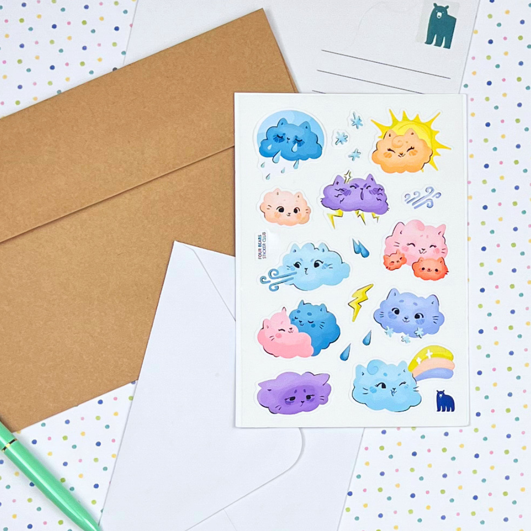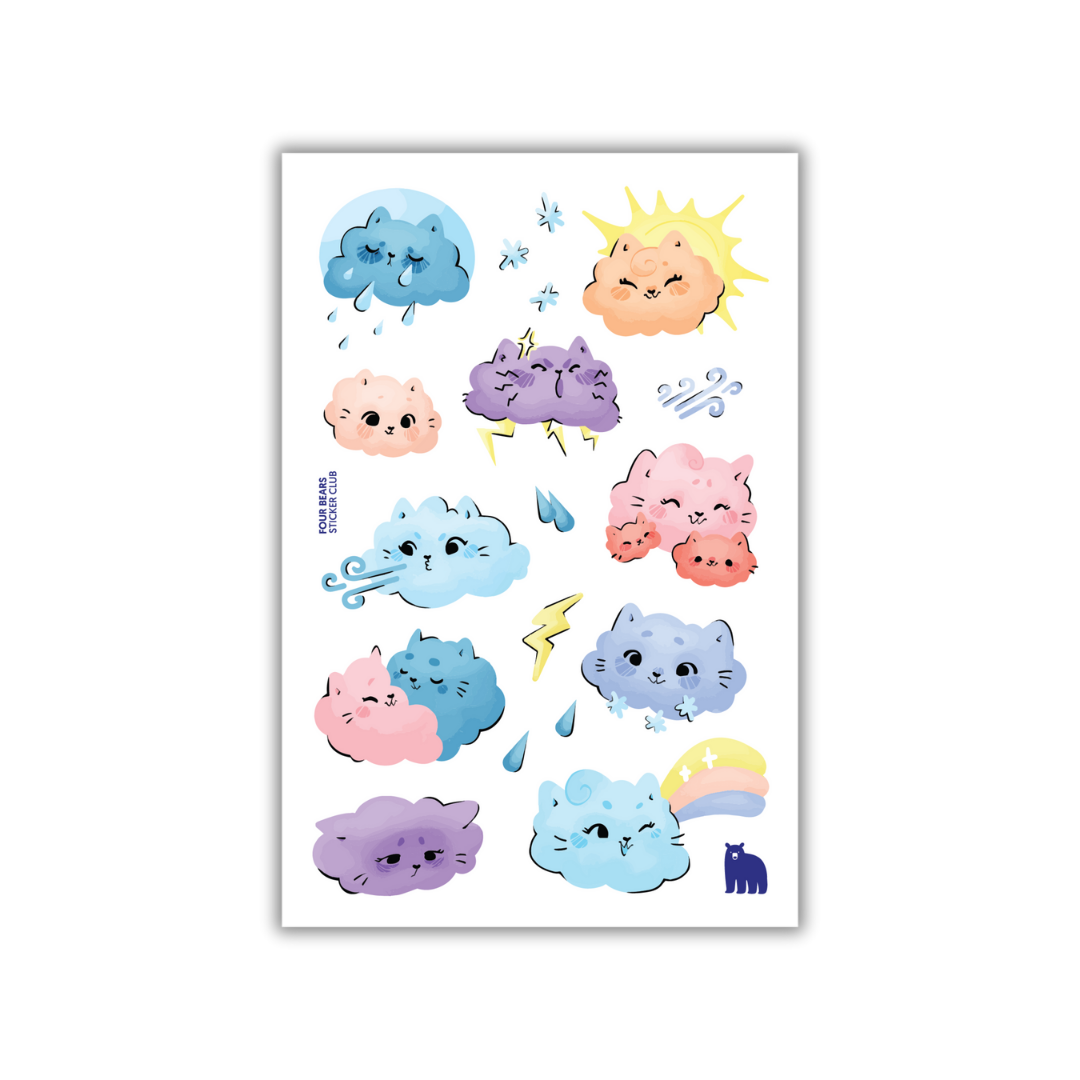 Four Bear Stickers - Cat Clouds
