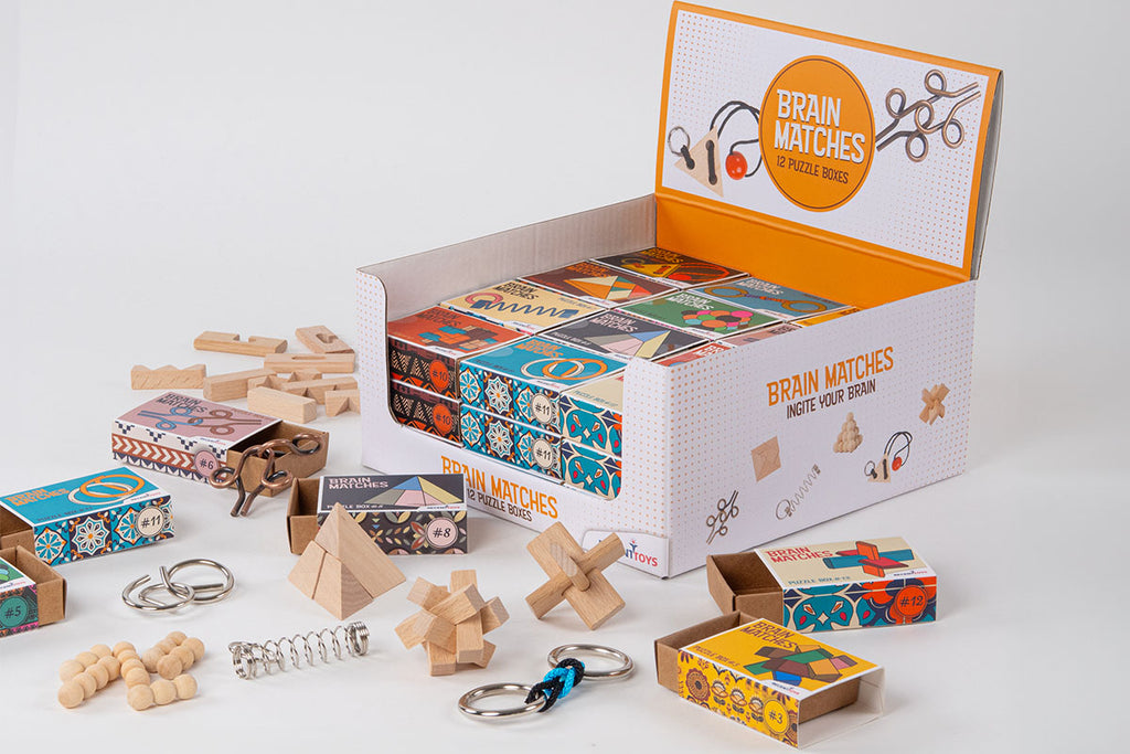 Ignite your brain! Introducing a unique and captivating challenge with Brain Matches. Sold individually, the collection includes 12 different designs, with puzzles crafted from both wood and metal.