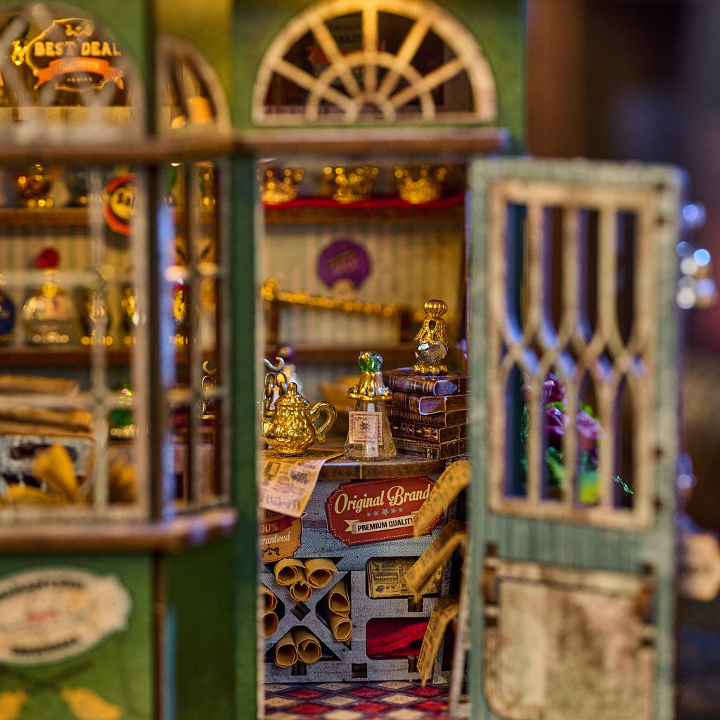 BookNooks are incredibly detailed miniature scenes that you build yourself, then fit perfectly into your bookshelf.  These kits are for ages 14+ and may take up to 7hrs. to complete.  Perfect for a teen or grownup!  (please don't buy this for an 8 yr old...)  They each include lights that illuminate the scene and include pieces made from wood, paper & metal.  Requires glue & AAA batteries x 2