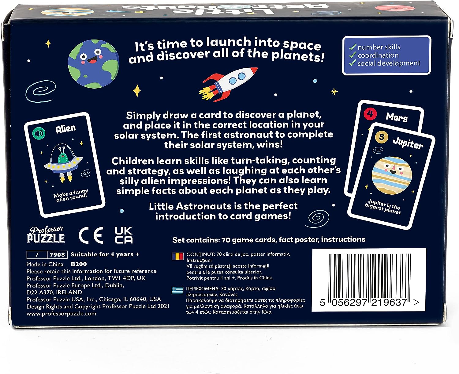 Simply draw a card to discover a planet, and place it in the correct location in your solar system. The first astronaut to complete their solar system wins! Children learn skills such as turn-taking, counting and strategy, and get to laugh at each other’s silly alien impressions! They can also learn simple facts about each planet as they play. Little Astronauts is the perfect introduction to card games!