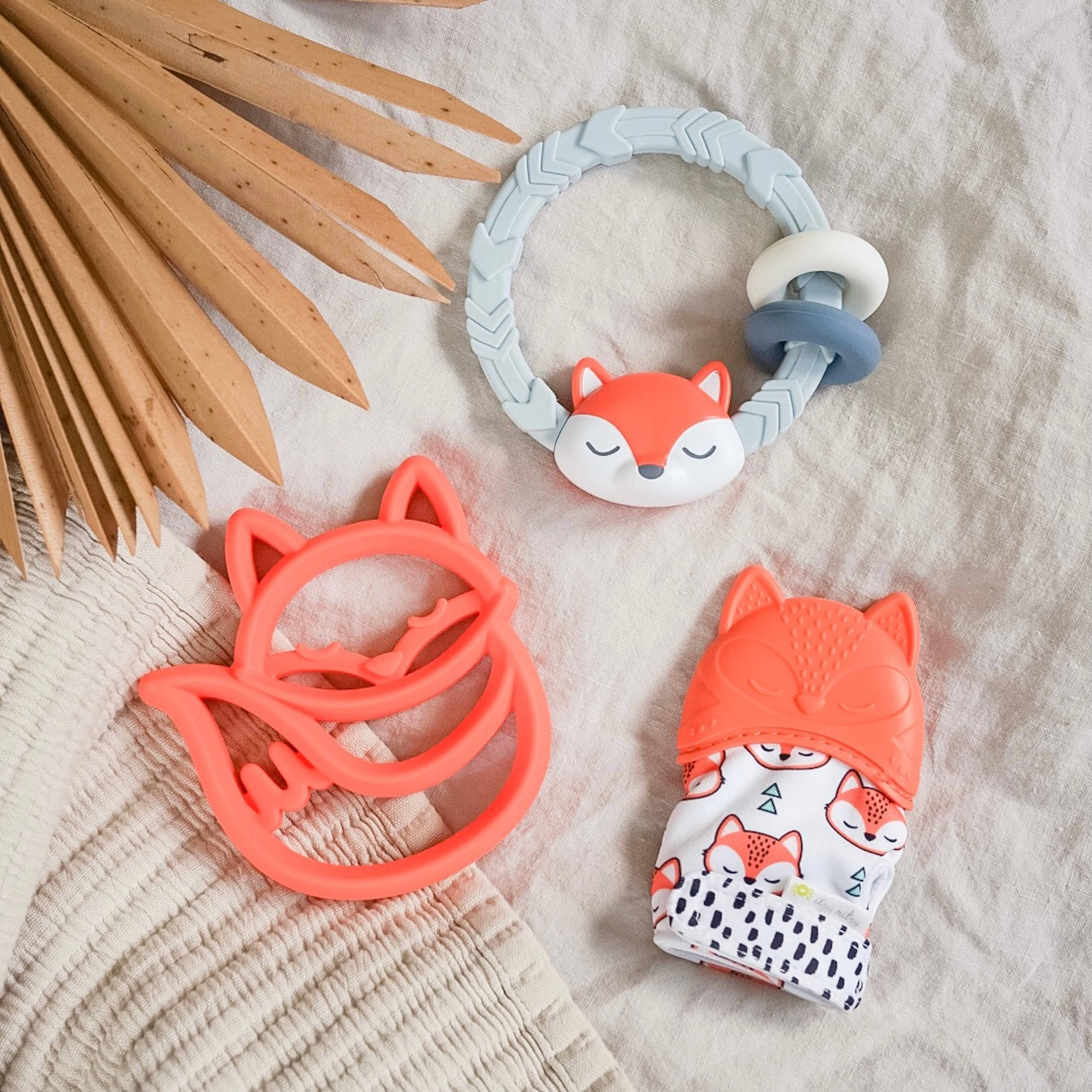 Babies love to chew to soothe swollen and teething gums. Our modern teething mitt is worn like a glove, making it perfect for babies who can’t yet hold a teether. The Itzy Ritzy Silicone Teething Mitt is made from food grade silicone and is durable, flexible and non-toxic. It includes a stimulating crinkle sound to keep baby entertained. The textured silicone surface helps baby discover new senses while getting relief from sore gums. CPSIA compliant. Free of PVC, BPA, lead, cadmium, phthalate.